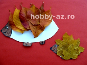 Frunzele uscate şi presate pot fi înlocuite cu frunze proaspăt adunate, doar că după ce le lipeşti frumos pui ariciul la presat.