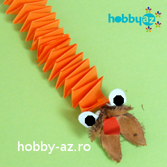 Curelușă unsă, printre flori ascunsă. Ghici, ghicitoarea mea! Materiale: hârtie xerox colorată, foarfecă, lipici, culori, semințe de fag Pașii de lucru: