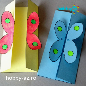 Felicitări colorat Materiale: coli colorate, ață, perforator Pașii de lucru: Scoți felicitarea la imprimantă. Decupezi felicitarea. Pliezi întâi jumătățile mici spre interior …